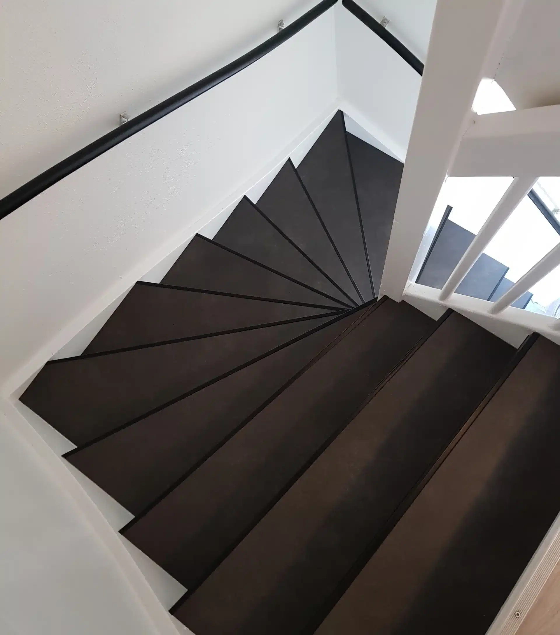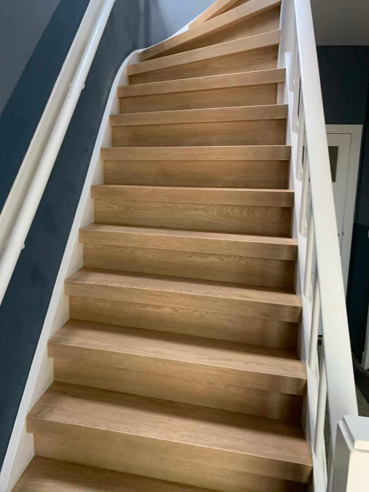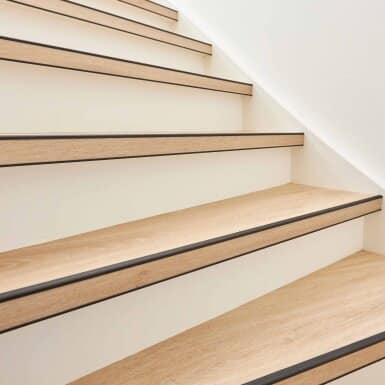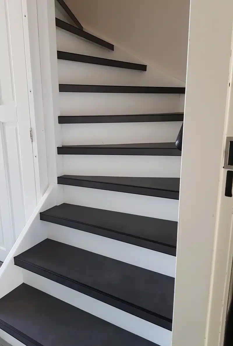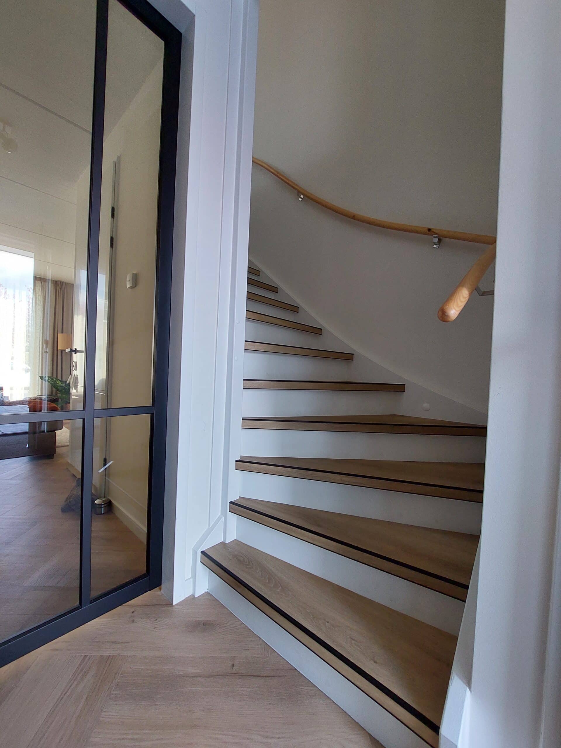 Traprenovatie kan door middel van pvc overzettreden of verlijmd pvc stroken met pvc-trapneusprofielen is een perfecte oplossing voor uw versleten trap.