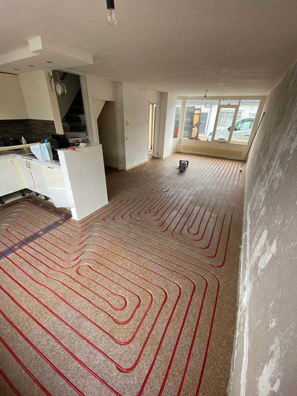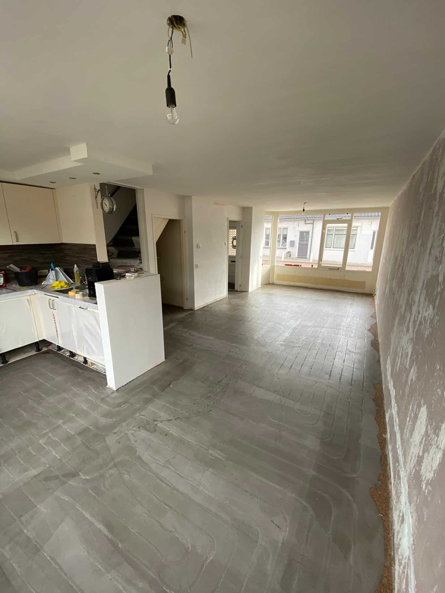 Cementdekvloer storten met vloerverwarming