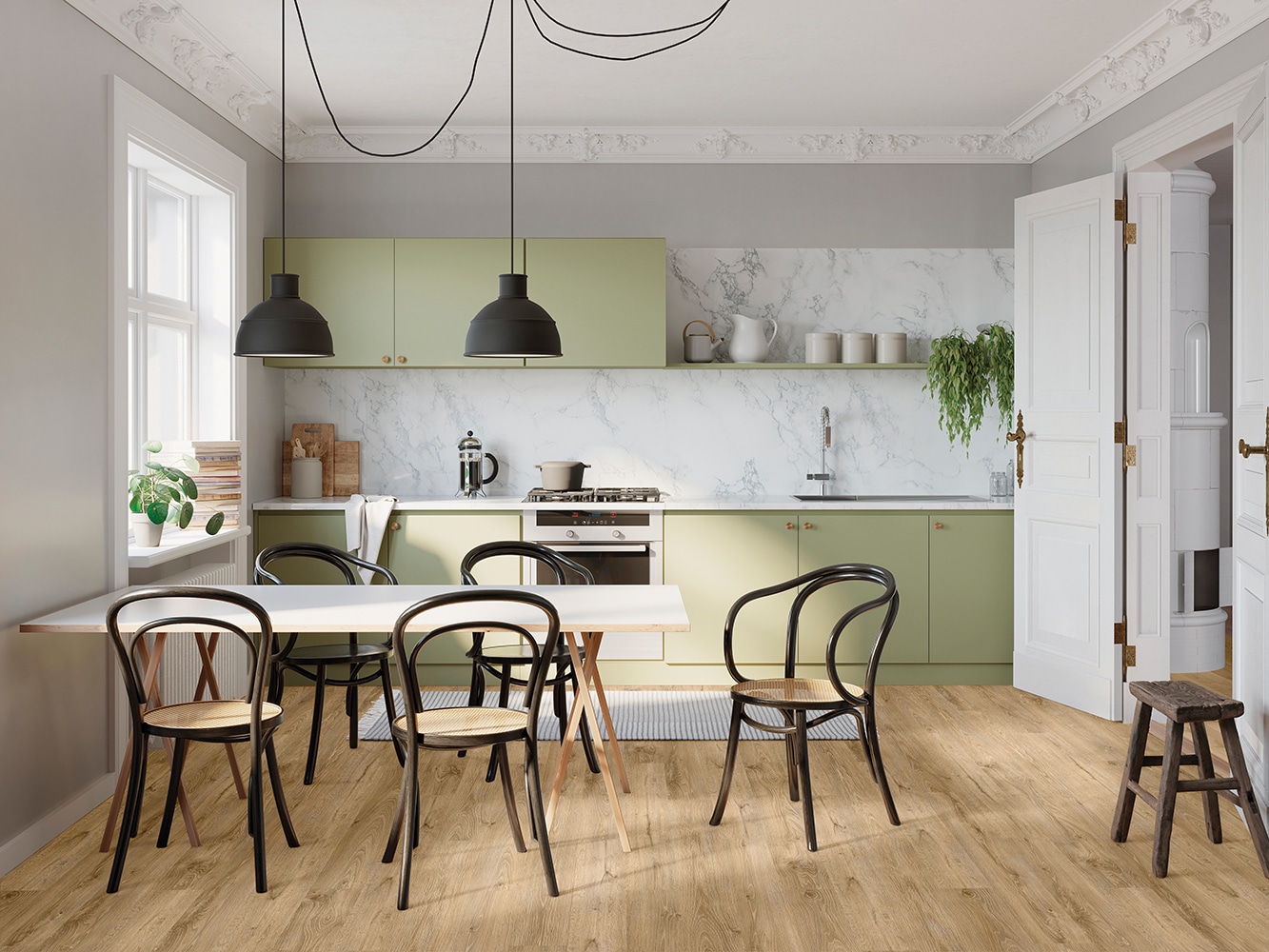 PVC Vloeren zijn verkrijgbaar in plankvorm, visgraat, hongaarse punt en tegelvorm. Welke vorm u ook kiest, dankzij de natuurgetrouwe structuur en het unieke karakter van iedere plank of tegel zijn PVC vloeren nauwelijks van echt hout te onderscheiden.